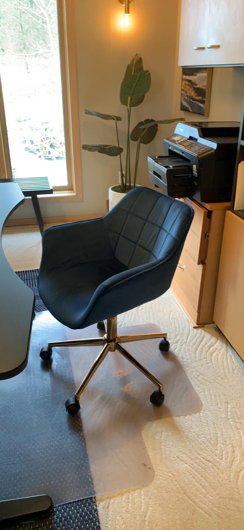Crafted with velvet upholstery atop golden plating finished legs, the office chair is striking, modern and as soft as it can be. Created with SGS and TV certified cylinder, our Boston is sturdy and durable for everyday use, safe and flexible for height adjustment and swaying here and there. If you are struggling to find a chair with a right level of style and comfort, this definitely could be the one.