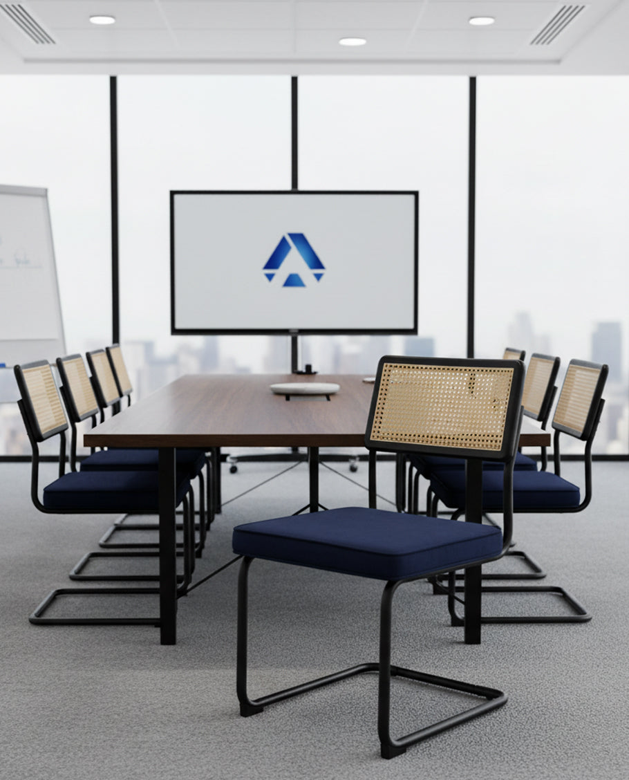 Influenced by iconic Bauhaus style, our Catskills cantilevered chairs provide the visual trick of the seat and back practically floating in air, reminding you of the days taking a deep breath of fresh air as you explore vistas in Catskills mountain. Plus, the cantilevered tubular steel is finished in an eclectic black to work well with any settings, while the open-weave cane back creates an earthy feeling and complements an airy aesthetics.