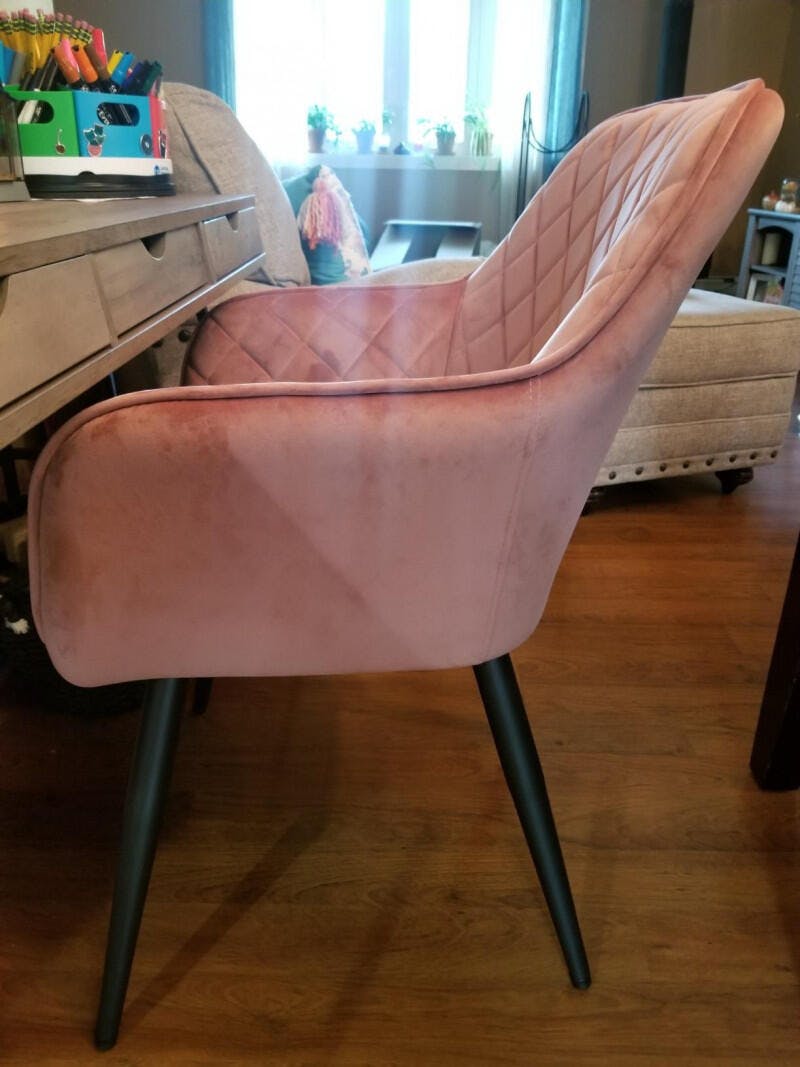 These chairs are just as I expected them to be. They will be used as part of a set of four chairs without armrests for a dinng table. The velvet is beautiful and soft. IThe order arrived a week early , imagine my surprise. At this point I would like to say "Thank you" to the seller for their patience with me. I did not look for any instructions and therefore I thought something was wrong with the chairs. The seller responded immediately to all of my e-mail and made different offers the fix the problem....which actually did not exsist after a friend came and put the chairs together, which was a really easy task. I am so very happy now and highly recommend products fom Duhome.