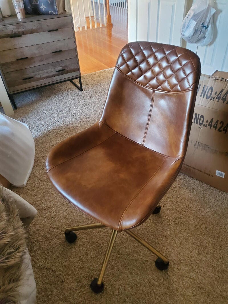Radiated with irresistible charm and vintage appeal, our Paducah?desk chair welcomes you to experience the upcoming retro space, where you can learn about everything from the city's derivation to its prosperity and the latest modern life. Rhombic and linear stitching details help unleash the 1960s personality of your inner designer.