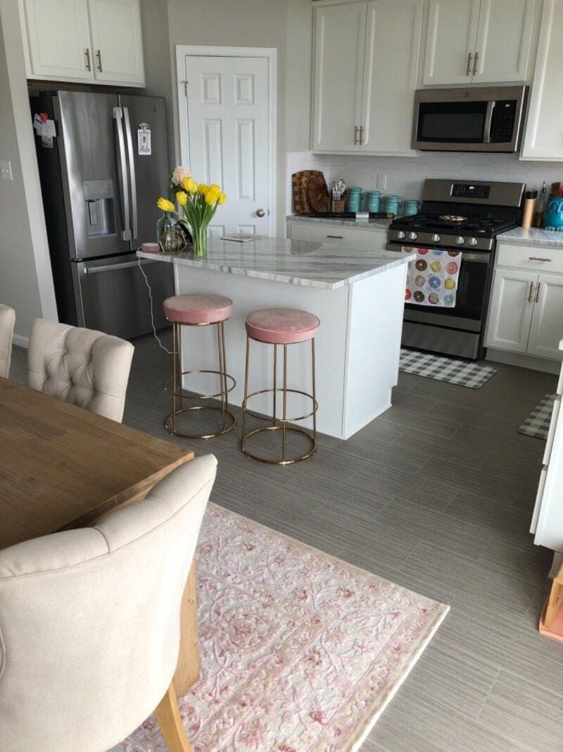 These stools are beautiful and go perfect with my decor! A touch of pink really adds something to my bright and inviting open concept; I even have men comment how pretty they are and how well they look in my kitchen! Highly recommended!