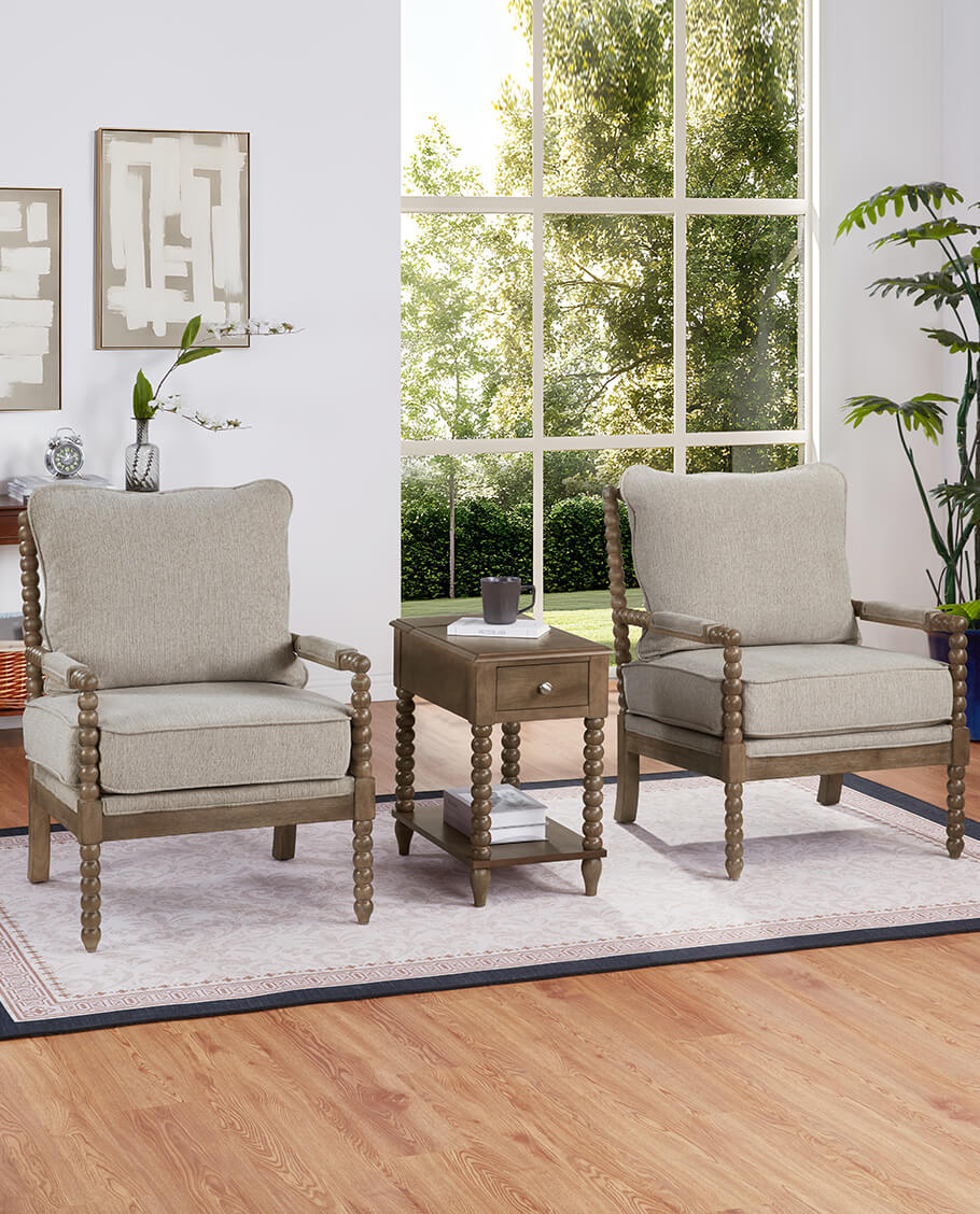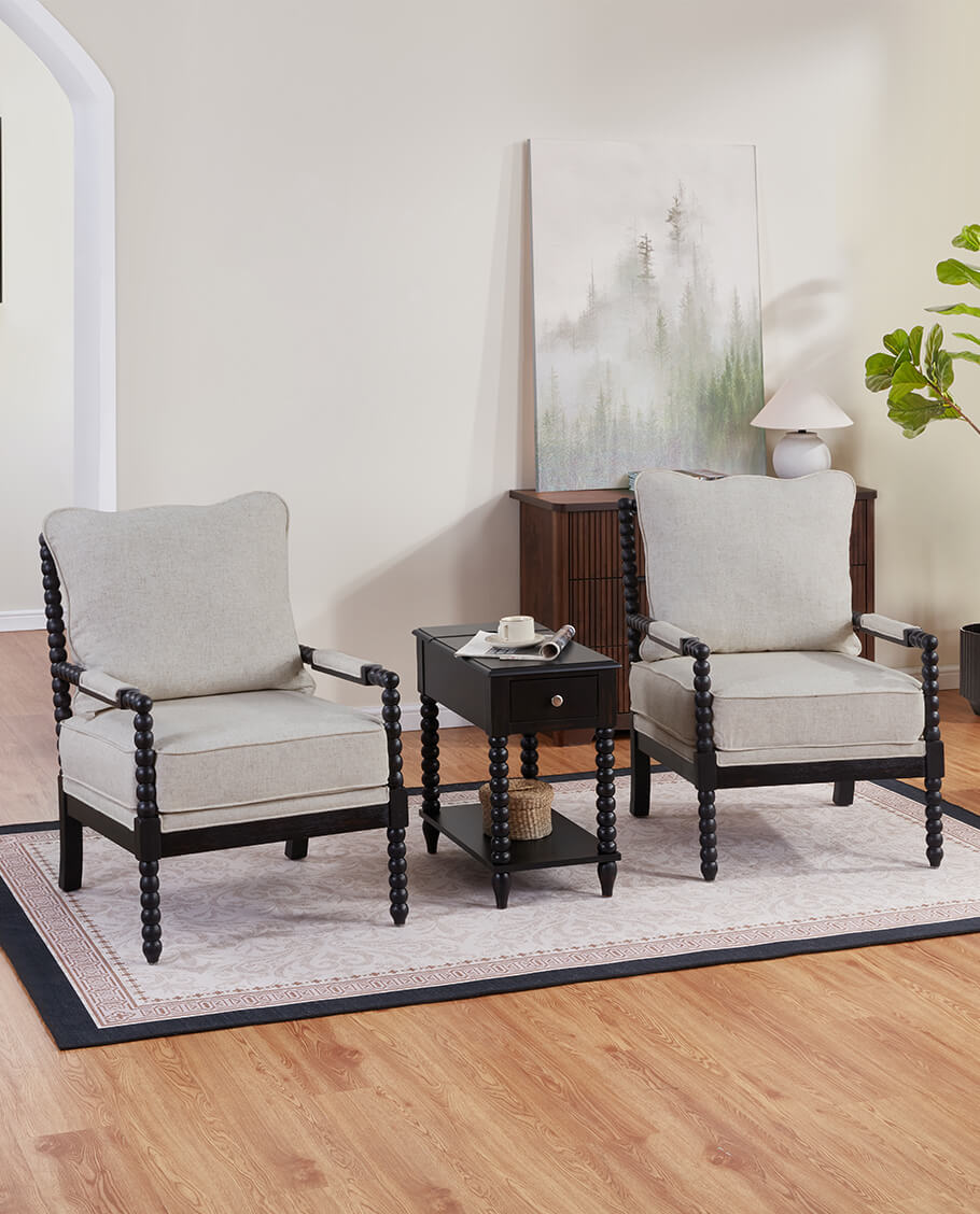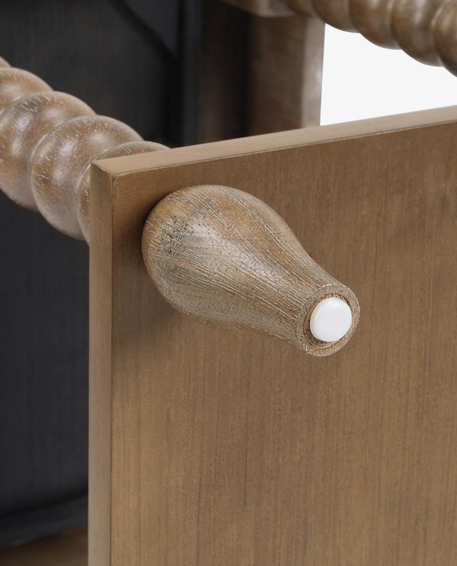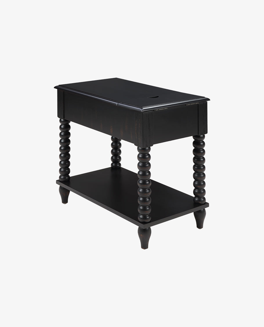 This versatile Spindle Leg Wood End Table features a built-in charging station with 2 USB ports, 1 outlet, and 2 Type-C ports embedded in the solid wood side panel. Charge multiple devices like phones and tablets clutter-free. Use as a sofa-side organizer, bedroom station, balcony stand, or hallway console. Supports up to 50lbs for lamps, trays, and more.